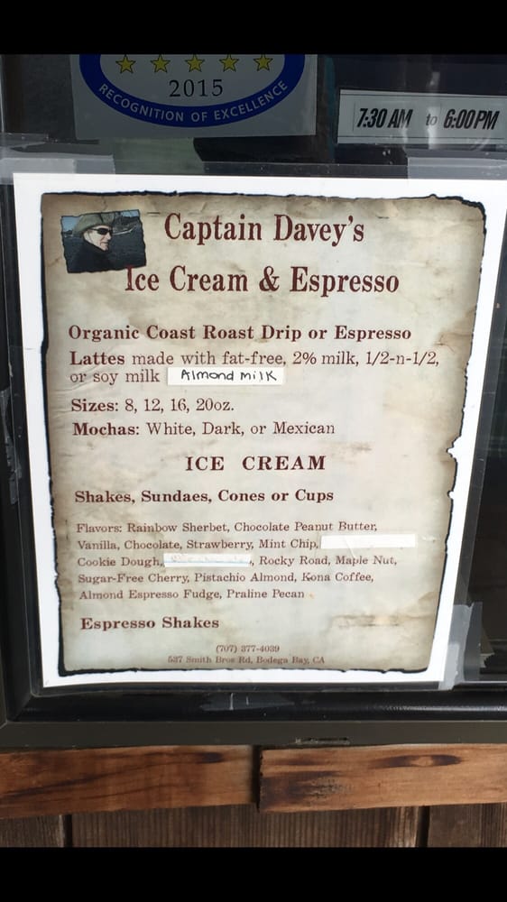Welcome to Captain Davey’s Coffee and Ice Cream, your perfect coastal stop in Bodega Bay! Nestled at 537 Smith Brothers Rd, this charming little shop serves up a delightful menu that's sure to satisfy both your coffee cravings and sweet tooth.